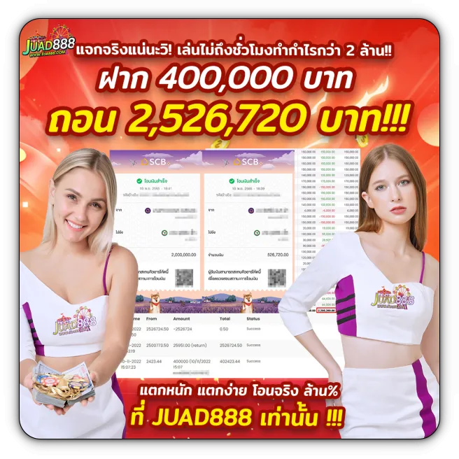 JUAD888 คือสุดยอดเว็บคาสิโนออนไลน์ครบวงจร ที่รวบรวมค่ายคาสิโนชื่อดังระดับโลกไว้ในที่เดียว มอบประสบการณ์การเดิมพันที่เหนือกว่า ด้วยความหลากหลายของเกม และเทคโนโลยีที่ทันสมัย ตอบโจทย์ผู้เล่นทุกไลฟ์สไตล์ ไม่ว่าจะเป็นสายสล็อต นักพนันไลฟ์เกม หรือคนรักเกมโต๊ะ เริ่มต้นด้วยค่ายเกมชั้นนำอย่าง SA Gaming ที่โดดเด่นเรื่องบาคาร่าและคาสิโนสดคุณภาพสูง ตามด้วย AE Sexy (Sexy Gaming) ที่มีดีลเลอร์สาวสวยสุดเซ็กซี่สร้างประสบการณ์เล่นที่เร้าใจไม่เหมือนใคร ในส่วนของสล็อตออนไลน์juad888 ก็ไม่เคยขาดสาย เพราะเรานำเข้าโซลูชันจาก Joker Gaming และ PG Slot Game สองยักษ์ใหญ่ที่ผู้เล่นทั่วโลกให้การยอมรับ เรื่องโบนัสแตกง่าย แจ็คพอตจัดเต็มนอกจากนี้ เรายังขนทัพค่ายคาสิโนระดับพระกาฬอย่าง WM Casino, Dream Gaming (DG), Pretty Gaming และ AMB Poker มาให้บริการครบครัน คาสิโนไหนดัง เกมไหนฮิตjuad888 รวบรวมมาไว้หมดแล้ว ไม่ต้องเสียเวลาเปลี่ยนเว็บ ไม่ต้องโยกเงินหลายกระเป๋า เพราะระบบ “กระเป๋าเดียว” ของเราช่วยให้คุณเข้าเล่นทุกค่ายเกมได้ทันที ฝาก–ถอนรวดเร็วภายใน 10 วินาที ด้วยระบบอัตโนมัติที่เสถียรสูง สะดวกสบาย ไร้ปัญหาค้างคาด้วยมาตรฐานระบบรักษาความปลอดภัยระดับสากล ข้อมูลส่วนตัวและธุรกรรมการเงินของสมาชิกทุกคนจะถูกเข้ารหัสอย่างแน่นหนา จัดการโดยทีมงานผู้เชี่ยวชาญด้านการเงินและเทคโนโลยี นอกจากความปลอดภัยที่คุณวางใจได้ เรายังมีทีมบริการลูกค้าตอบคำถามและดูแลแก้ไขปัญหา ตลอด 24 ชั่วโมง ทุกวัน ไม่มีวันหยุด พร้อมช่องทางติดต่อหลากหลาย ทั้งแชทสด ไลน์ และอีเมลจ๊วด888 ไม่เพียงแค่คาสิโนสดและสล็อตออนไลน์เท่านั้น เรายังมีเกมโต๊ะยอดนิยมอื่นๆ ให้เลือกสรร ได้แก่ แบล็คแจ็ค โต๊ะรูเล็ต โป๊กเกอร์ และเกมยิงปลา ที่คัดสรรมาเพื่อผู้เล่นทุกระดับ ตั้งแต่มือใหม่จนถึงเซียนคาสิโน ฝึกฝนฝีมือ ทดลองเล่นฟรีก่อนลงสนามจริง และรับโปรโมชั่นสุดคุ้ม ทั้งโบนัสสมาชิกใหม่ คืนยอดเสีย และแจกเครดิตฟรีแบบไม่อั้นสำหรับผู้ที่ชื่นชอบความบันเทิงบนมือถือjuad888 ก็พร้อมรองรับทุกแพลตฟอร์ม ไม่ว่าคุณจะใช้สมาร์ทโฟน แท็บเล็ต หรือพีซี เข้าถึงเกมโปรดได้อย่างลื่นไหล ไร้สะดุด ด้วยการออกแบบ UI/UX ที่ใช้งานง่าย สวยงาม และตอบโจทย์ผู้เล่นยุคใหม่